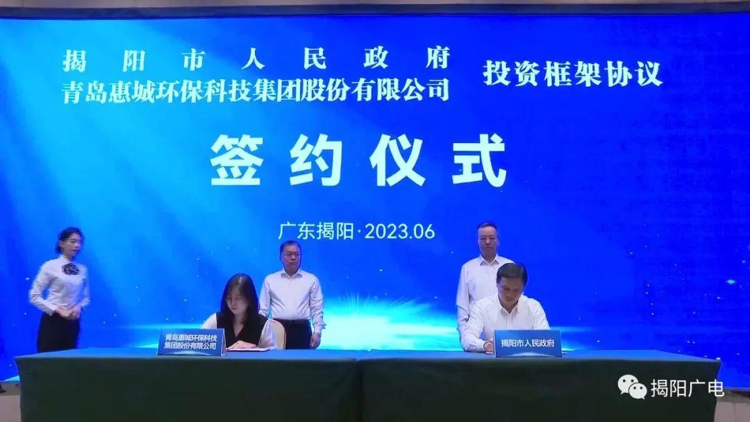 6月18日,揭陽市人民政府與青島惠城環(huán)保科技集團(tuán)股份有限公司在揭陽市區(qū)簽署投資框架協(xié)議。