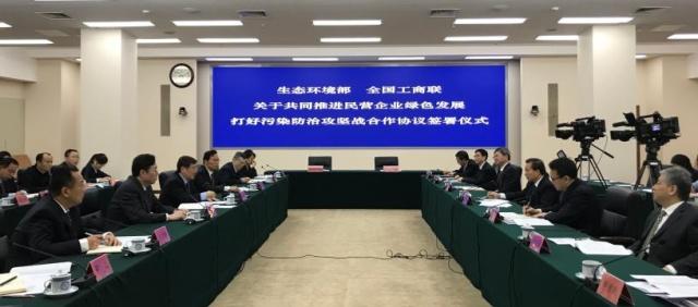 今天,生態(tài)環(huán)境部和全國工商聯(lián)簽署了“關(guān)于共同推進(jìn)民營企業(yè)綠色發(fā)展 打好污染防治攻堅(jiān)戰(zhàn)”的合作協(xié)議,聯(lián)合出臺(tái)《關(guān)于支持服務(wù)民營企業(yè)綠色發(fā)展的意見》,將通過健全市場(chǎng)準(zhǔn)入機(jī)制、完善環(huán)境法規(guī)標(biāo)準(zhǔn)、規(guī)范環(huán)境執(zhí)法行為、強(qiáng)化科技支持服務(wù)、完善環(huán)境經(jīng)濟(jì)政策措施,支持民營企業(yè)提高綠色發(fā)展水平、營造公平競(jìng)爭(zhēng)市場(chǎng)環(huán)境。
