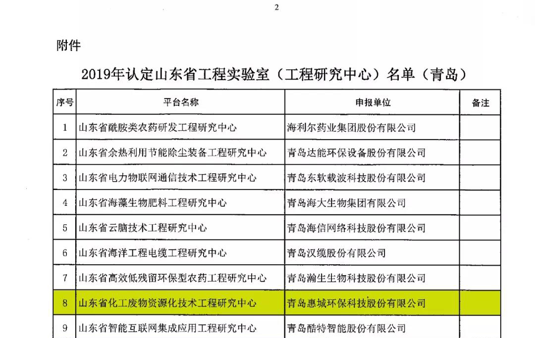 日前,根據(jù)山東省發(fā)展和改革委《關(guān)于公布2019年認(rèn)定山東省工程實(shí)驗(yàn)室(工程研究中心)名單的通知》(魯發(fā)改高技〔2019〕360號(hào))發(fā)布文件,我公司申報(bào)的省級(jí)工程研究中心獲批并被認(rèn)定為山東省化工廢物資源化技術(shù)工程研究中心。