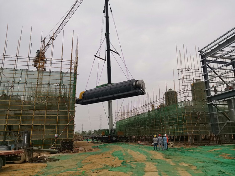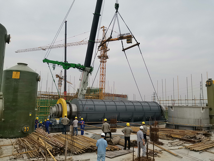 23日上午7點,隨著吊裝指揮的一聲令下,焙燒爐開始起吊。在現(xiàn)場所有建設者的注視下,500噸汽車吊平穩(wěn)提升,至8點37分,焙燒爐順利吊至裂化劑廠房6米層樓板上。