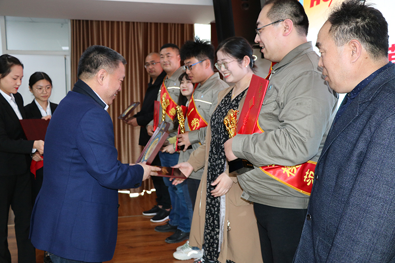 公司董事長(zhǎng)張新功為勞動(dòng)模范家屬頒獎(jiǎng)