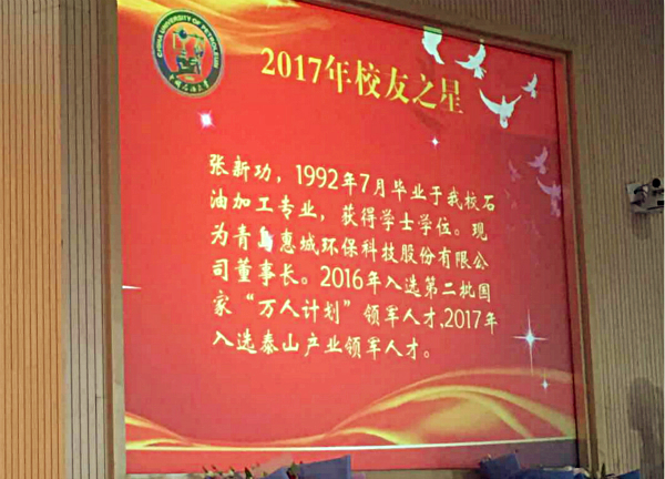 恭賀我公司董事長張新功被中國石油大學(xué)(華東)授予“校友之星”榮譽稱號