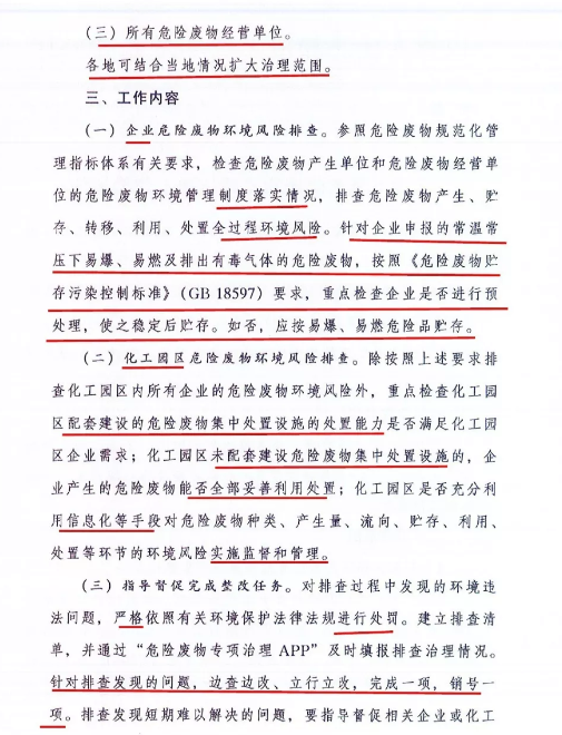 日前生態(tài)環(huán)境部印發(fā)加急文件《關(guān)于開展危險廢物專項治理工作的通知》。