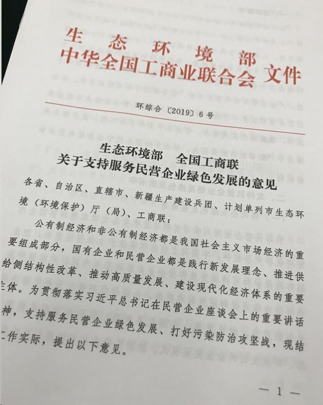今天,生態(tài)環(huán)境部和全國工商聯簽署了“關于共同推進民營企業(yè)綠色發(fā)展 打好污染防治攻堅戰(zhàn)”的合作協議,聯合出臺《關于支持服務民營企業(yè)綠色發(fā)展的意見》,將通過健全市場準入機制、完善環(huán)境法規(guī)標準、規(guī)范環(huán)境執(zhí)法行為、強化科技支持服務、完善環(huán)境經濟政策措施,支持民營企業(yè)提高綠色發(fā)展水平、營造公平競爭市場環(huán)境。