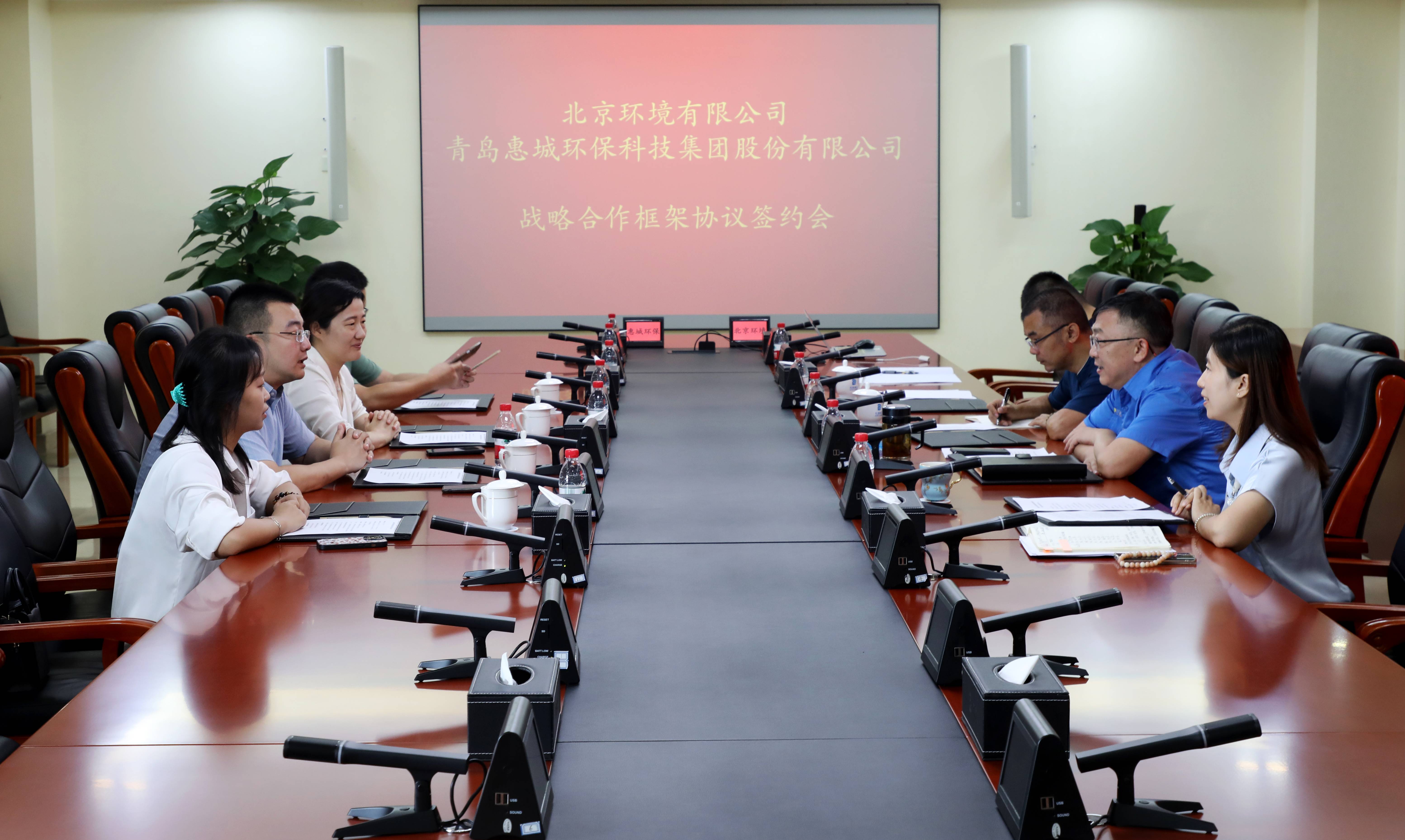 8月2日,青島惠城環(huán)??萍技瘓F股份有限公司(簡稱“惠城環(huán)?!保┡c北京環(huán)境有限公司(簡稱“北京環(huán)境”)成功簽署戰(zhàn)略合作協(xié)議,惠城環(huán)??偨?jīng)理林瀚、北京環(huán)境總經(jīng)理韓曉鵬代表雙方鄭重簽約,青島惠城環(huán)境科技有限公司(簡稱“惠城環(huán)境”)總經(jīng)理張秋艷等出席會議。?