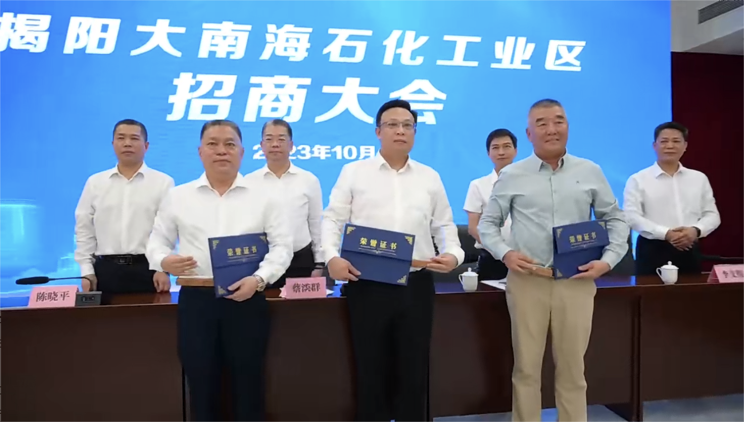 10月20日上午,揭陽大南海石化工業(yè)區(qū)招商大會順利舉行,以招商引資大突破助推發(fā)展動(dòng)能大提升。揭陽市委常委、副市長、大南海石化工業(yè)區(qū)黨工委書記蔡淡群,大南海石化工業(yè)區(qū)黨委副書記、管委會主任陳曉平等出席會議,惠城環(huán)保集團(tuán)創(chuàng)始人張新功受邀出席并被聘任為招商大使。